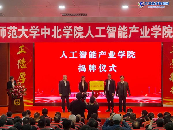 江苏教育新闻网讯(通讯员 贾成俊 赵晖 周竹生)11月5日下午,南京师范大学中北学院举行人工智能产业学院成立大会。这是该校继相伯融媒体产业学院、生命健康产业学院、智能制造产业学院后成立的第四个产业学院,标志着学院在深化“应用型、地方性、特色化”办学定位上迈出坚实一步。丹阳市人民政府副市长谢丰羽,南京师范大学党委常委、副校长岳嵩,江苏省计算机学会秘书长金莹教授,以及来自多所高校的专家学者和知名企业代表共同出席活动。