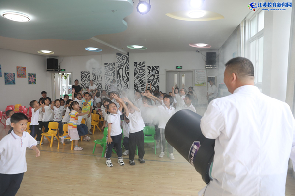 江苏教育新闻网讯(通讯员 潘晓军 王卫伟 陈家秀)10月15日,海安市南莫镇中心幼儿园内洋溢着浓厚的科学探索氛围。海安市科技馆工作人员走进校园,带来一场精彩纷呈的科学实验秀,有趣的现象、生动的讲解搭配互动体验,引得孩子们阵阵掌声与欢呼。