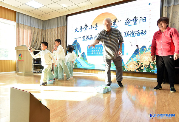 江苏教育新闻网讯(通讯员 庄文斌 尹江声 高瞻)10月28日,扬州市老干部书画研究会联合健身器材爱心企业组织一支“夕阳红”助教关爱公益团队走进扬州市机关第三幼儿园,开展以“大手牵小手·喜迎重阳”为主题的送书画、送健康、送祝福——“三送”联谊活动。