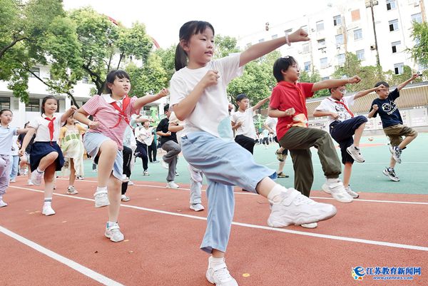 江苏教育新闻网讯 (通讯员 庄文斌 蔡蓓蓓)9月23日是秋分节气。扬州市汶河小学的孩子们在体育老师的组织下,利用大课间走出教室,通过“传统武术+趣味游戏”——强身健体的运动方式,迎接秋分的到来。