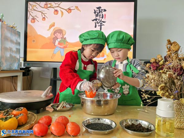江苏教育新闻网讯 (通讯员 马昀钰 钱静璇)10月23日是霜降节气。高邮市高新区实验幼儿园的孩子们动手制作柿子饼,体验“柿柿如意”的秋日香甜。